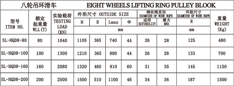 1、吊钩特点:优质合金钢模锻而成,3倍安全系数。 2、滑轮:铸铁滑轮、铸钢滑轮、热轧滑轮。 3、滑轮套芯:复合耐磨铜套、纯铜套、滚珠轴承、滚针轴承。 4、其他吨位可以定做。
